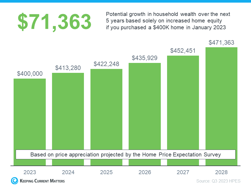 In this example, let’s say you bought a $400,000 home at the beginning of this year. If you factor in the forecast from the HPES, you could potentially accumulate more than $71,000 in household wealth over the next five years.