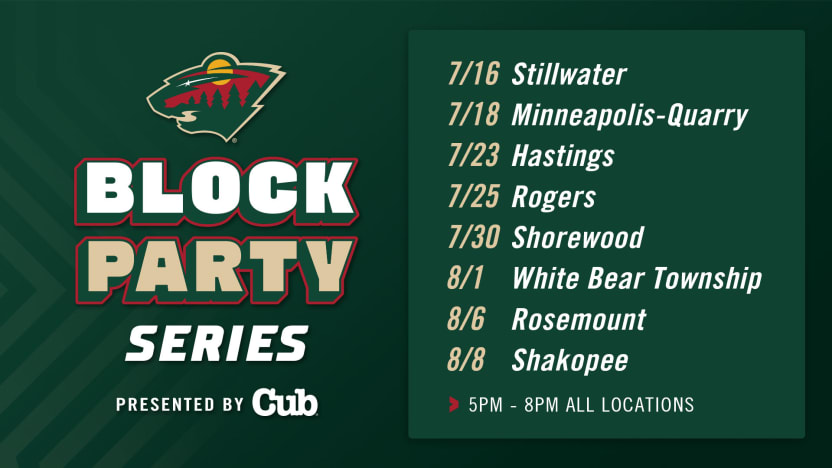 The Minnesota Wild today announced the 2024 Block Party Series presented by CUB will visit eight communities in the Twin Cities this summer starting on Tuesday, July 16 at the CUB in Stillwater, from 5 – 8 p.m. All events are free and open to the public.