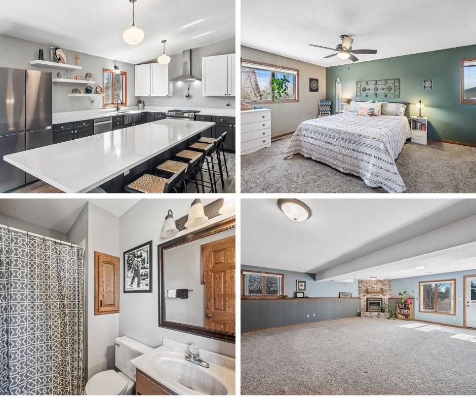 Don’t miss out on this hidden gem in the Town of Hudson. Nestled on a quiet 2.14 acre lot where you will enjoy country living and serene views, plus an ideal location that is just a quick drive into town. This fabulous 5 bedroom, 2 bathroom home features an inviting foyer with large entry closet, open main level floor plan with vaulted ceiling, sun-filled living room, a beautifully remodeled gourmet kitchen with large 10’ center island that provides an incredible space for everyday living, wonderful sun room with wood burning fireplace, and convenient maintenance-free deck with covered gazebo. You will also find 3 bedrooms on the main level, including the primary bedroom with its own private bath. The finished walkout lower level with its massive family room and gas fireplace provides an incredible space for entertaining. Two additional bedrooms, bathroom, and laundry/storage room round out the lower level space. Oversized 2-car garage, concrete patio, firepit area, and spacious backyard for so many outdoor activities. Many updates include new kitchen remodel, LVP Flooring & appliances (2024), new roof & gutters (2022), drain field & septic (2021), furnace (2019), water heater & softener (2025). Enjoy the vibrant Hudson community with both its charm and convenience. You are only minutes away from historical downtown Hudson along the beautiful St. Croix River, endless shopping & restaurant options, parks, and quick access to I-94 for an easy Twin Cities commute.