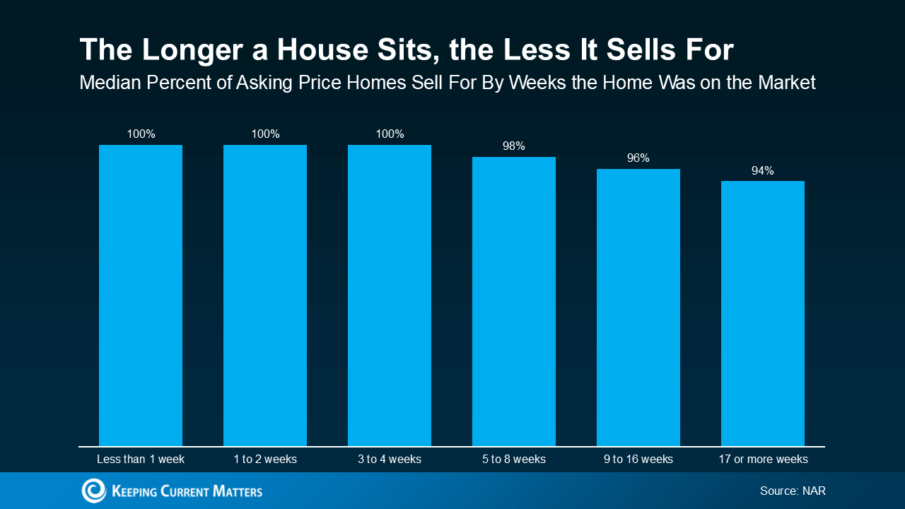 You can see that shake out in the graph below. It uses data from the National Association of Realtors (NAR) to show that the longer a house sits, the less it’ll sell for: