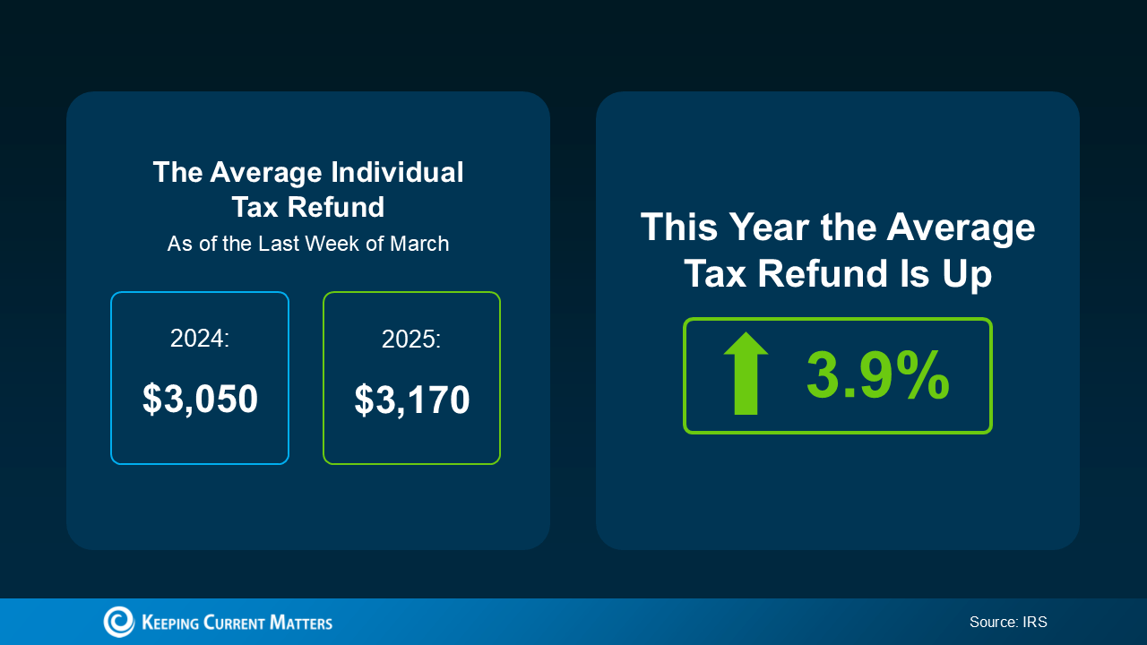 On average, people are getting even more money back in their refunds than they did last year. While it’s not a big increase, the visual below uses data from the Internal Revenue Service (IRS) to show the average individual’s refund is 3.9% higher this year: