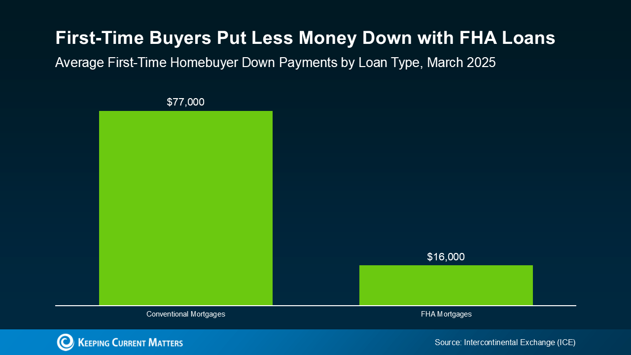 In fact, according to Intercontinental Exchange (ICE), the average first-time buyer using an FHA loan puts down just $16,000. That’s a big difference from the $77,000 they’re putting down with the typical conventional mortgage (see graph below):