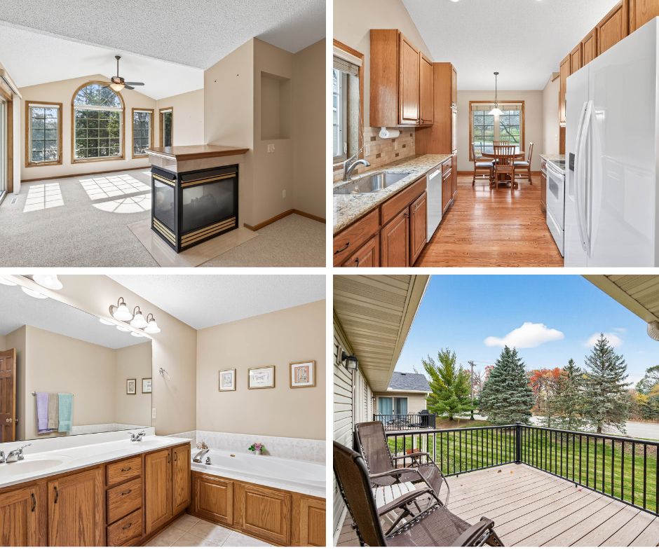 Wonderful opportunity to enjoy one level, maintenance-free living in the sought after Wynstone neighborhood of Eden Prairie. Offering a spacious open floor plan within a private, 24-unit, self-managed development with common area pond, wildlife area and Gazebo. The main level features an inviting great room with dramatic vaulted ceiling and two-sided gas fireplace, nicely updated kitchen with dinette, primary bedroom, office/den, laundry room, and a lovely sunroom that offers convenient access to the maintenance-free deck. The generous primary bedroom with walk-in closet and private bathroom with separate soaking tub, walk-in shower, and dual vanity. The finished walkout lower level provides a great space to entertain with its spacious family room, two additional bedrooms, bathroom, oversized storage/utility room, and large covered patio that overlooks the beautiful backyard. A very convenient location provides easy access to walking/bike trails, parks, shopping, dining, grocery, coffee, library, community center and major highways. Move-in and enjoy a little piece of paradise.
